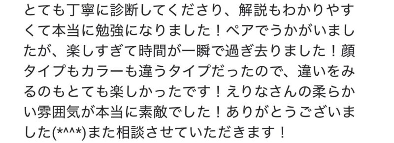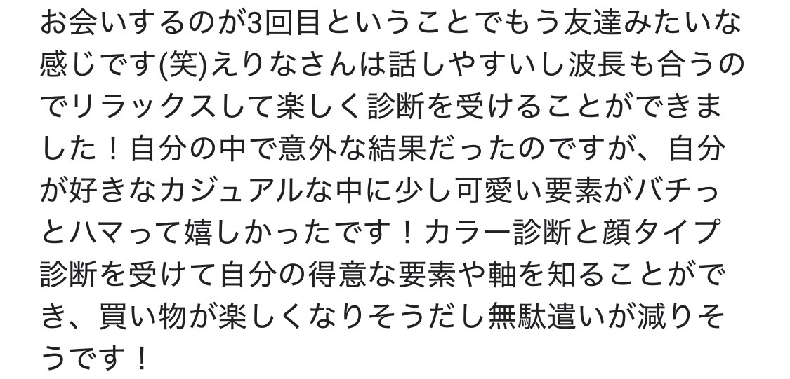 私の診断では、カラー・顔タイプ・骨格を